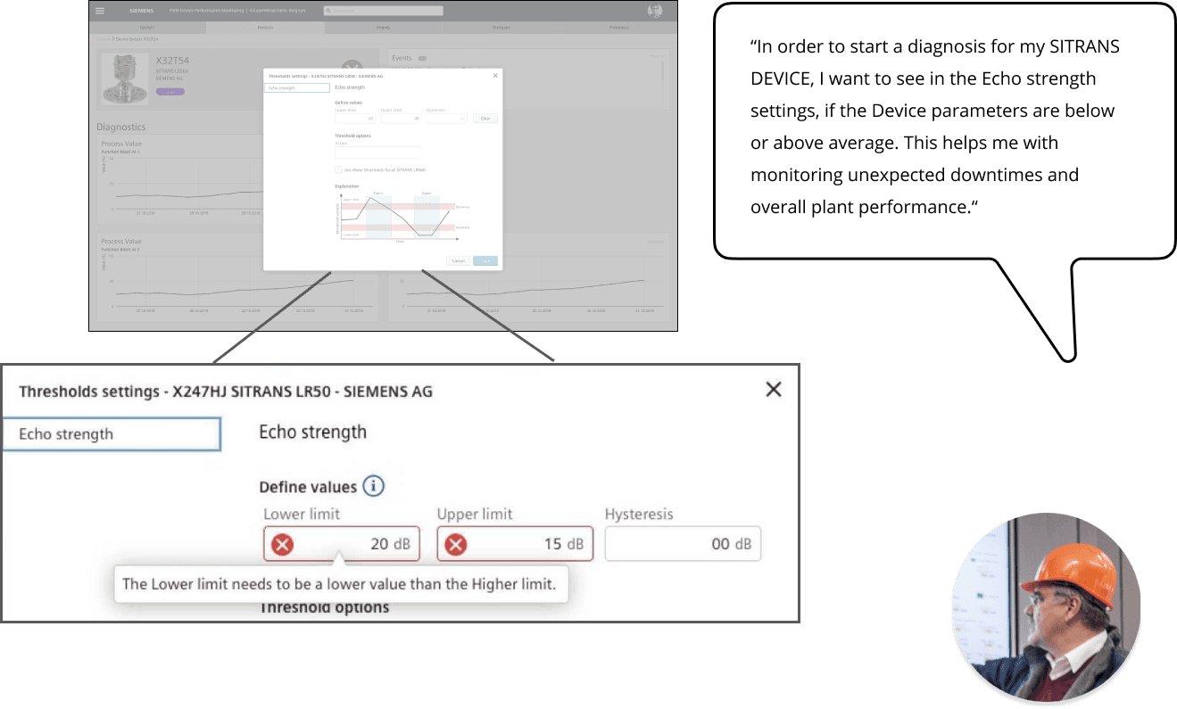 The Asset Manager can set the Diagnostic Values for e.g. Echo Strength.