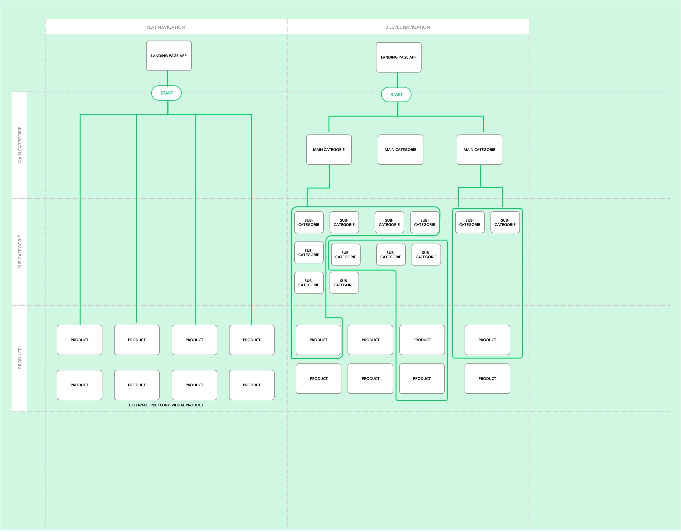 Flat Navigation vs. Three-level Navigation Concept