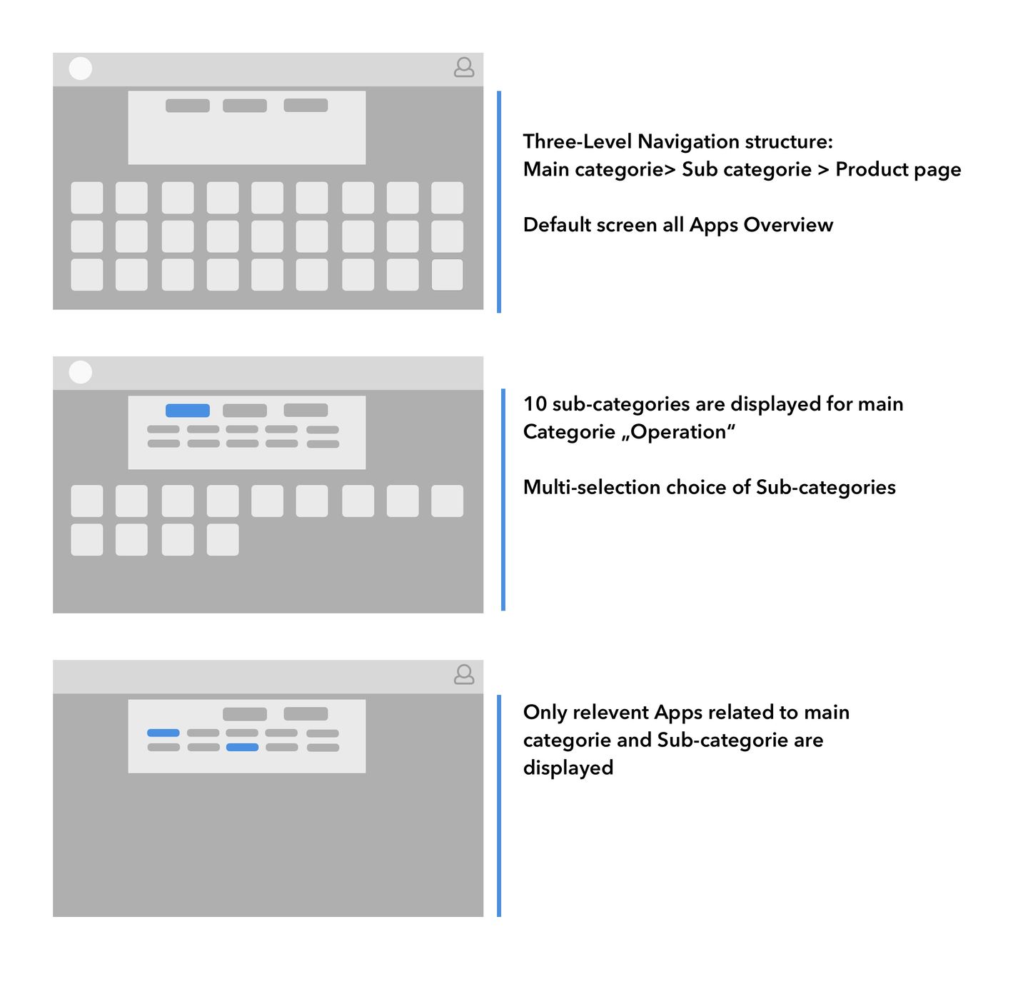 In close collaboration with developers, I iteratively shaped concepts for the Apps Suite Portal’s navigation and product pages, focusing on content hierarchy and detail levels.