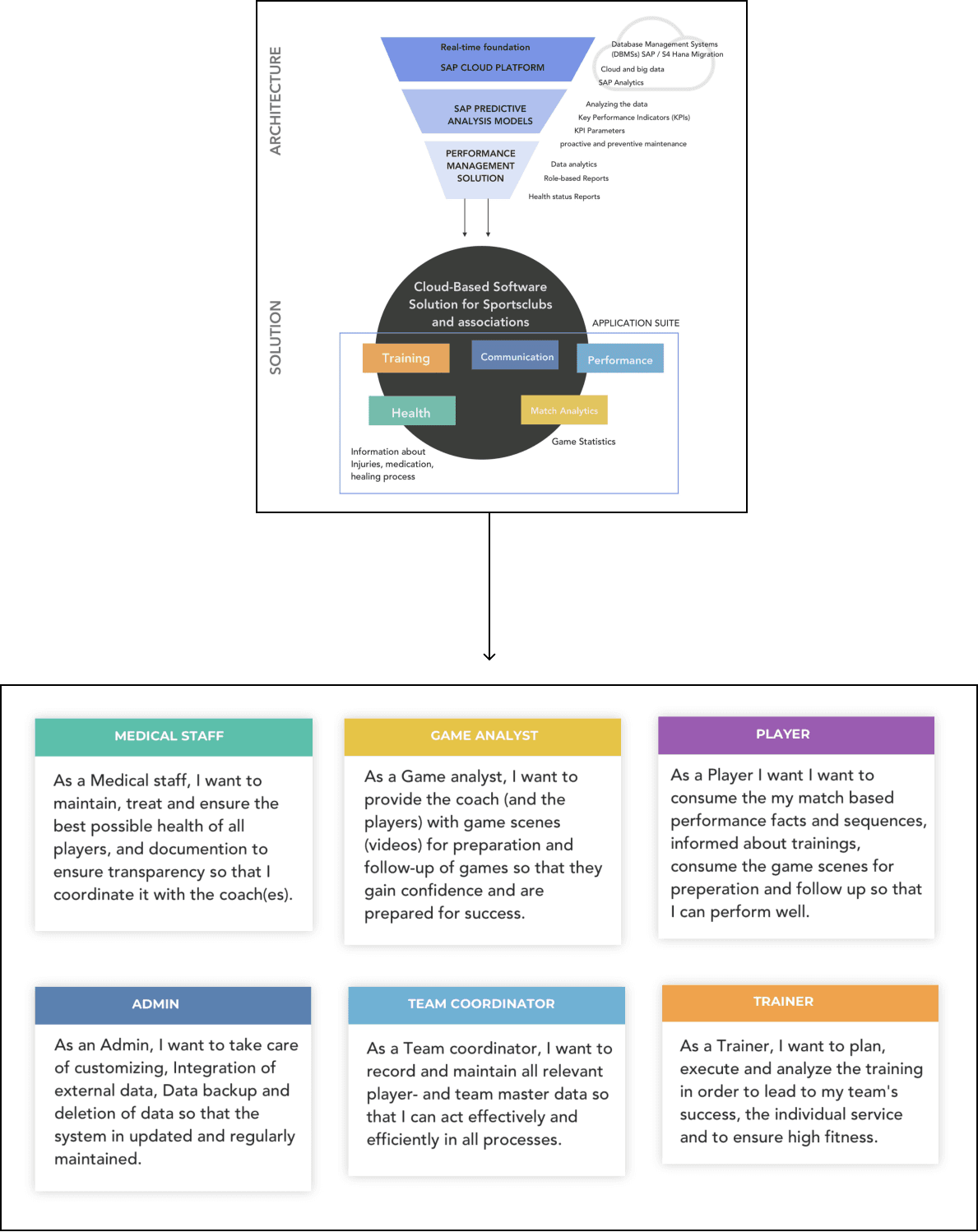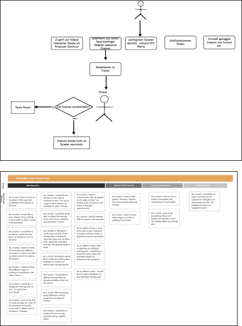 The Use cases and User story maps emerged from the customer interviews with the Game analyst and Trainer.